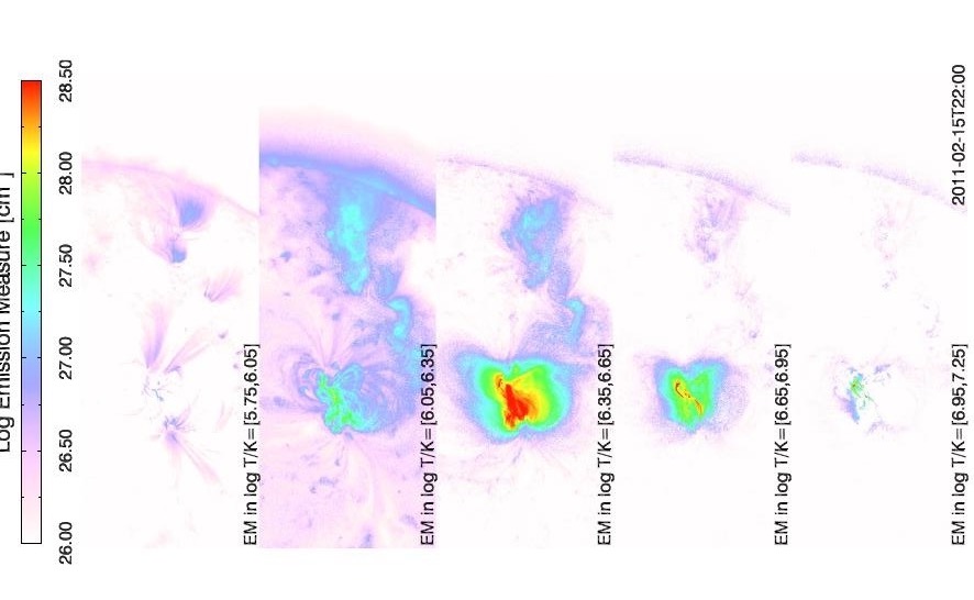 我们反演生成了六个EUV波段(94、131、171、211、193、335)太阳活动区的差分发射测量(DEM)图像,并计划研究它作为基于深度学习的太阳耀斑的预测或前兆时的预报效果。SDO/AIA同时使用跨越日冕温度范围的多个光谱波段,这保证了诊断观测系统热演化的能力。然而,尽管该仪器在设计上非常适合约束瞄准线上光学薄等离子体的温度,但从发射等离子体的温度和密度方面对AIA数据的常规解释仍然是一个难以解决的问题。因为AIA EUV通道的温度响应函数通常是多热的(即,它们有等离子体在一定温度范围内的贡献),观测到的等离子体的热分布不能从EUV图像直接推断。要了解日冕温度,必须将日冕等离子体的多热性质与EUV通道的多热响应分开。DEM显示了等离子体发射测量(EM)的分布作为温度的函数,并量化了沿观测视线(LOS)的光学薄冠状和过渡区等离子体的温度结构。因此我们使用活动区DEM图像作为数据集使用深度学习方法提取耀斑预报前兆特征,在本研究中我们目标是对EUV六个波段的活动区图像进行反演成DEM图像,将其设定为不同的温度响应范围,再结合深度学习方法对其进行训练学习生成太阳耀斑预报模型,通过模型测试结果探索哪个温度响应范围用于耀斑预报更为有效。